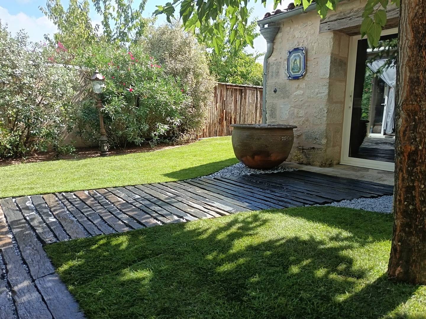 Chez Sud Ouest Environnement, nous créons des aménagements extérieurs sur mesure. Cette réalisation à Villegouge illustre notre savoir-faire en matière d’aménagement paysager.