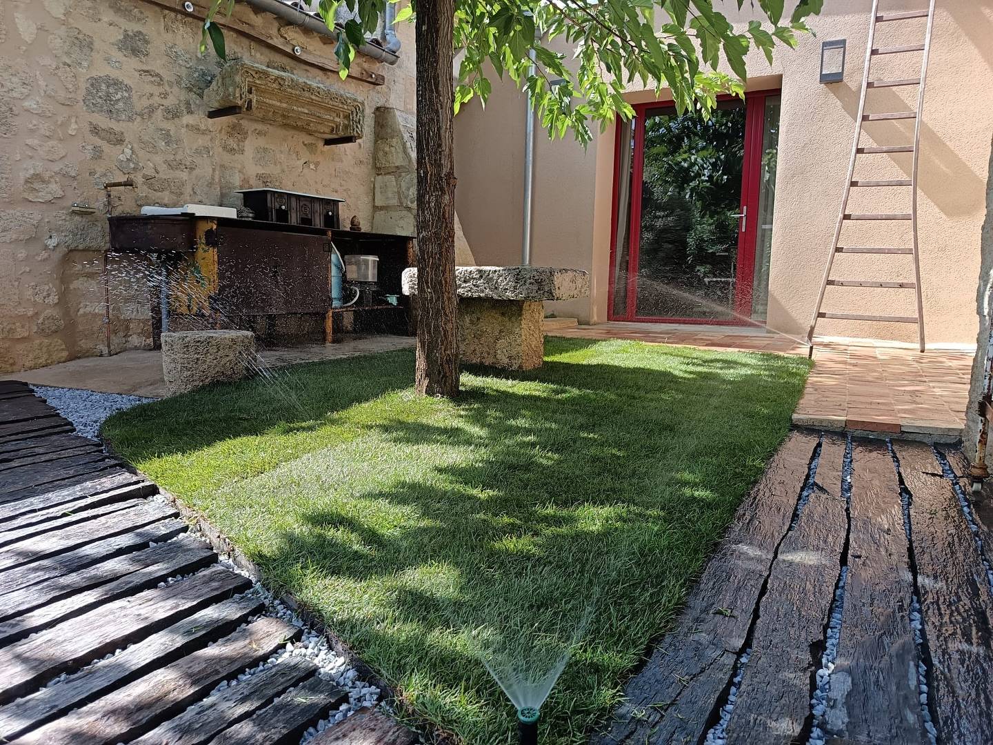 Afin de préparer le jardin aux fortes chaleurs de notre région, nous avons installé un système d’arrosage avec programmation automatique. Cette solution permet un arrosage régulier et maîtrisé, tout en optimisant la consommation d’eau. L’arrosage automatique garantit ainsi la durabilité du gazon précultivé et des plantations, même en période de sécheresse.