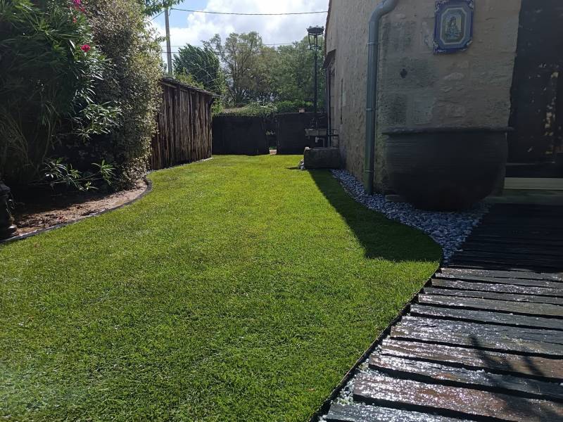 Vous souhaitez créer une allée piétonne, poser du gazon naturel ou installer un arrosage automatique près de Villegouge ?